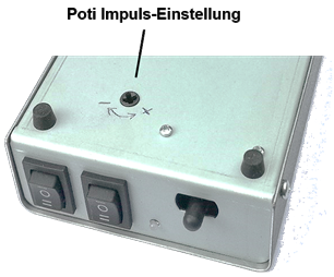 Tasthebel, Motorlauf links/rechts, in der Mittelstellung Sofortstopp, Umschalter Schnellauf/Impulsbetrieb (kleinste Schrittweite), Umschalter Ausgang 1/2.