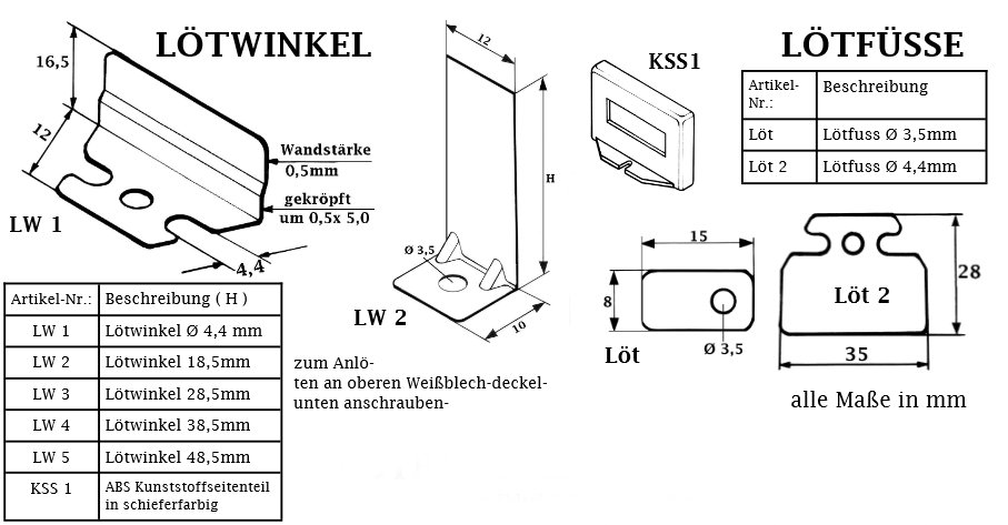 - zum einlöten für Weißblechgehäuse