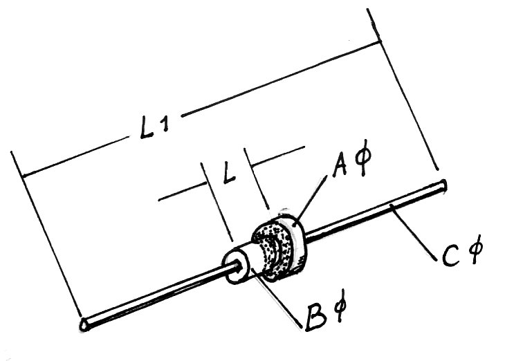 - AØ=3,8; BØ=2,3; CØ=0,75;L=4;L1=56